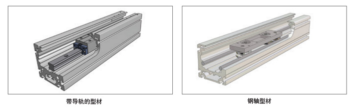 如果是直線導軌,則底座輪廓固定導軌;如果是履帶支重輪導軌,則底座輪廓固定鋼軸。導軌用螺釘固定在型材上(如下圖),鋼軸壓入型材中。除少數(shù)例外,基本型材為陽極氧化鋁型材。AXBG系列的線性軸以及AXS和AXLT系列的特殊設計基于鋼型材。基礎(chǔ)輪廓在很大程度上決定了線性軸的剛度。