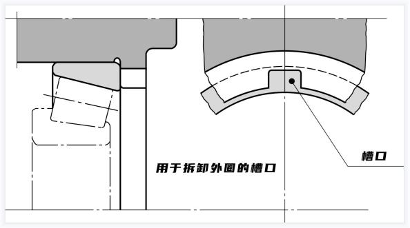 圓柱孔軸承的拆卸如上圖及下圖所示,通常使用壓力機(jī)或拉拔器來拆卸小軸承,設(shè)計還必須考慮到拆卸,如下圖所示,長時間使用的大型過盈配合軸承的拆卸需要較大的負(fù)載,此類軸承應(yīng)設(shè)計為通過液壓方式拆卸,除此外,電感加熱器可用于拆卸具有可分離內(nèi)圈和外圈的圓柱滾子軸承。