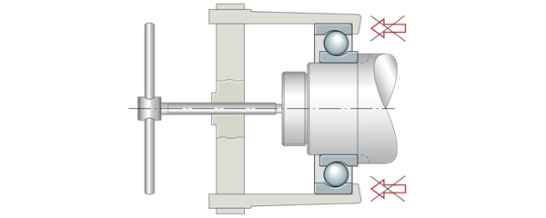 實例表明,在設計相鄰零件時必須考慮拆卸工具的放置。如果內圈緊密配合,則必須能夠接近其端面。可以通過例如限制軸肩直徑或在軸肩中提供槽來實現,間隔環或迷宮式環的設計必須確保它們不會干擾拆卸。