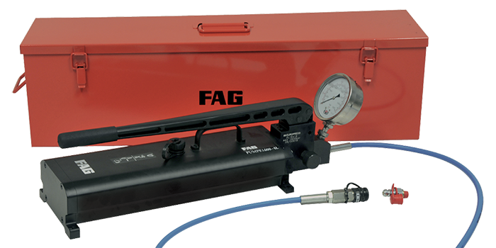 在安裝和拆卸錐形軸頸上帶有錐形孔的軸承時,一個簡單的噴油器就足夠了,如果存在圓柱形配合面,并且使用了緊定套或抽油套管,則由于配合面邊緣會出現油損失,因此必須壓入更多的油。在這種情況下,可以使用油壓高達1600巴的雙級手動活塞泵