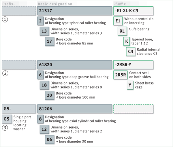 前綴通常標(biāo)識(shí)完整軸承的單個(gè)軸承部件(在某些情況下,這也可能是基本名稱的一部分)