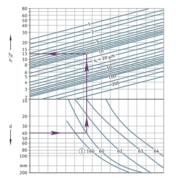 對(duì)于各種軸承類型,徑向內(nèi)部間隙Sr和軸向內(nèi)部間隙Sa彼此依賴。下表顯示了某些軸承類型的徑向和軸向內(nèi)部間隙之間相關(guān)性的指導(dǎo)值
