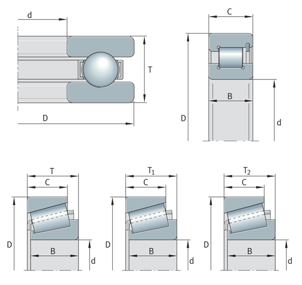 一般來(lái)說(shuō),軸承安裝空間的尺寸是標(biāo)準(zhǔn)化的。然而,標(biāo)準(zhǔn)化并不適用于內(nèi)部尺寸,例如滾動(dòng)元件的尺寸和數(shù)量。公制滾動(dòng)軸承的主要尺寸在以下ISO尺寸中進(jìn)行了定義:
