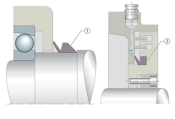 具有徑向接觸的密封圈配備了類似于旋轉軸密封的密封唇幾何形狀,選擇密封邊緣的角度,使密封接觸處的泵送作用向外排斥液體,并在密封邊緣下方輸送少量潤滑脂,以潤滑密封唇。