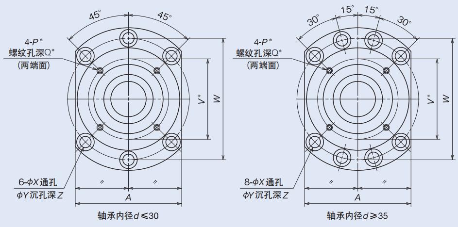 | 軸承尺寸及安裝尺寸(mm) | ||