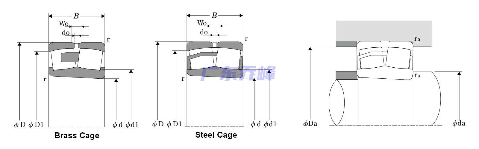 | 調心滾子軸承,帶圓錐孔&注油槽 - 尺寸 | |