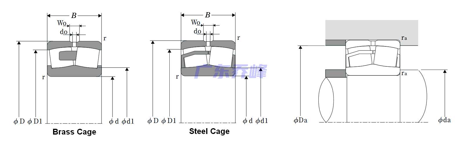 B:一體式機加工黃銅保持架,抗沖擊性好,剛度大(B型:每排一個機加工黃銅保持架)