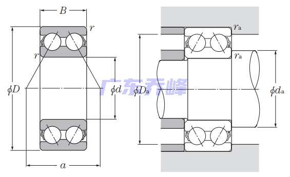 | 雙列角接觸球軸承 - 開(kāi)式 - 尺寸 | |