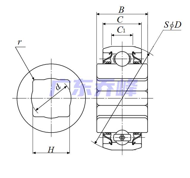 | 重型盤式軸承 - 方孔,球面外圈,4系列 - 尺寸 | |