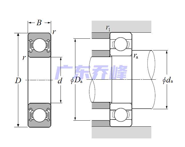 | 單列深溝球軸承 - 雙面密封(非接觸式橡膠密封) - 尺寸 | |