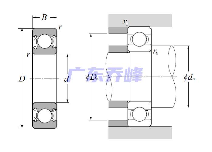 單列深溝球軸承 - 單面防塵蓋&單面密封(非接觸式橡膠密封) - 尺寸