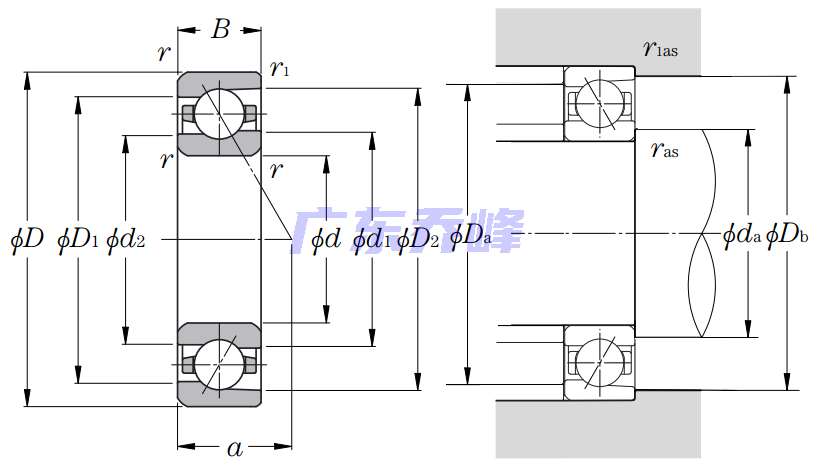 單列角接觸球軸承,默認(rèn)接觸角:30o