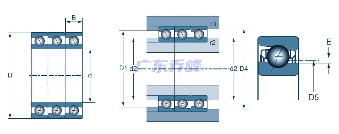 三列角接觸球軸承,機床用,Q15型 - 尺寸
