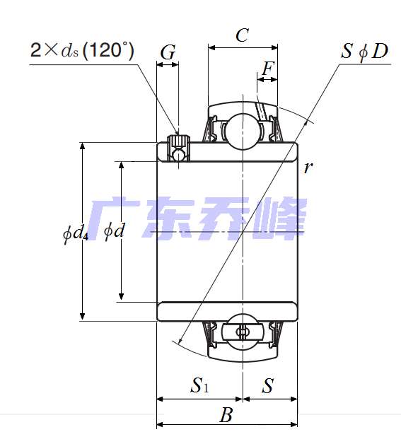 UC:寬內圈,緊定螺釘式,帶拋油環(huán)