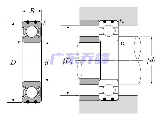 | AC軸承 - 雙面密封(非接觸式橡膠密封) - 尺寸 | |
