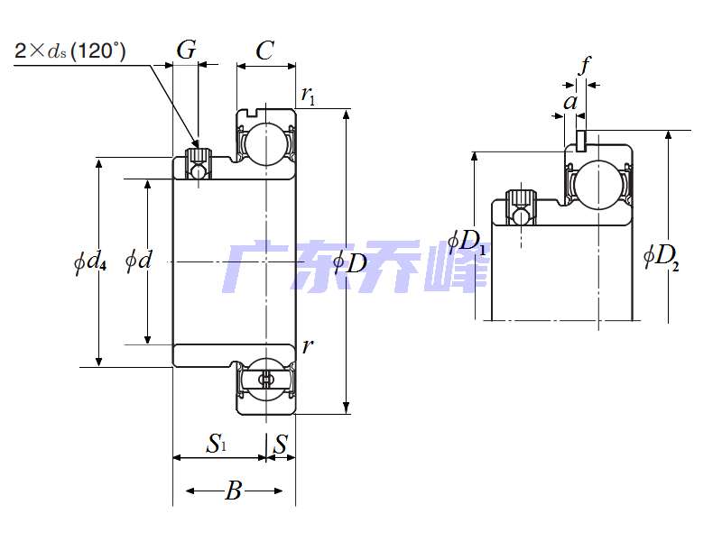 | 帶緊定螺釘?shù)耐馇蛎孑S承,狹窄內(nèi)圈 - 圓柱內(nèi)徑,帶止動(dòng)環(huán) - 尺寸 | |