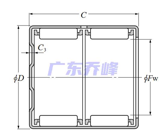 | 沖壓外圈滾針軸承 - 雙列BK型 - 尺寸 | |