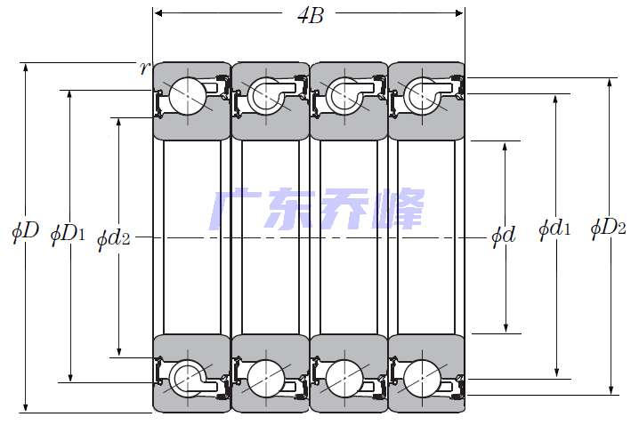 滾珠絲杠用四列角接觸推力球軸承 - DTTT配對,雙面密封,四排承受軸向載荷 - 尺寸