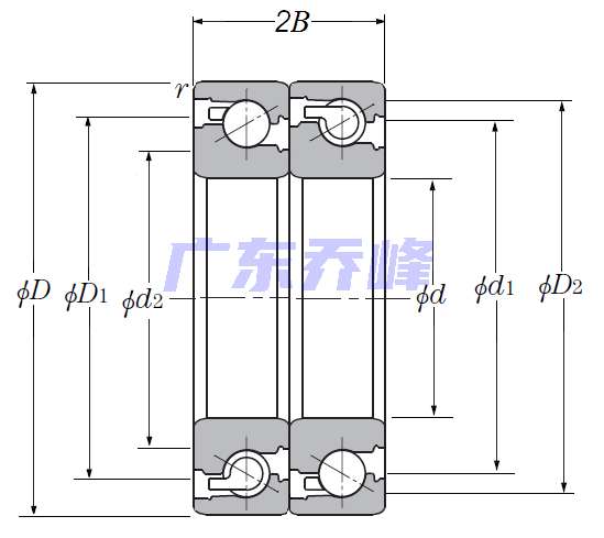 | 滾珠絲杠用雙角接觸推力球軸承 - 串聯配對,開式,一排承受軸向載荷 - 尺寸 | |