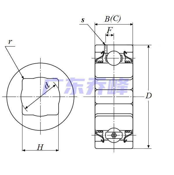 軸承型號:DC211TT3,重型盤式軸承 - 方孔,圓柱內徑,7系列,其基礎型號為211,前綴列表:【D:盤式軸承】【C:圓柱外圈】,后綴列表:【TT3:三層唇封,3:特殊特征代號】