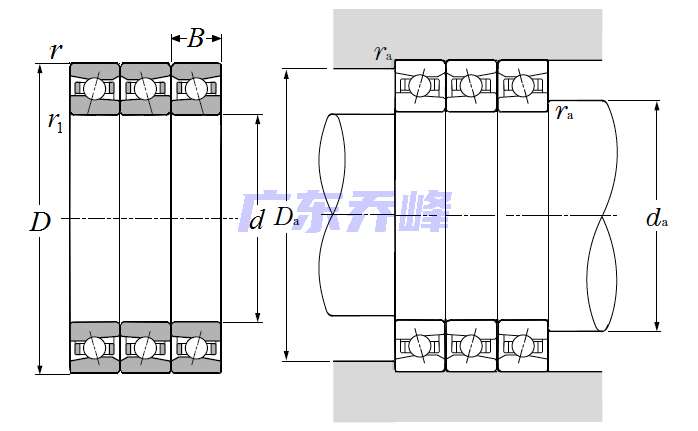 | 超高速多列角接觸球軸承,背對(duì)背配對(duì) - 尺寸 | |