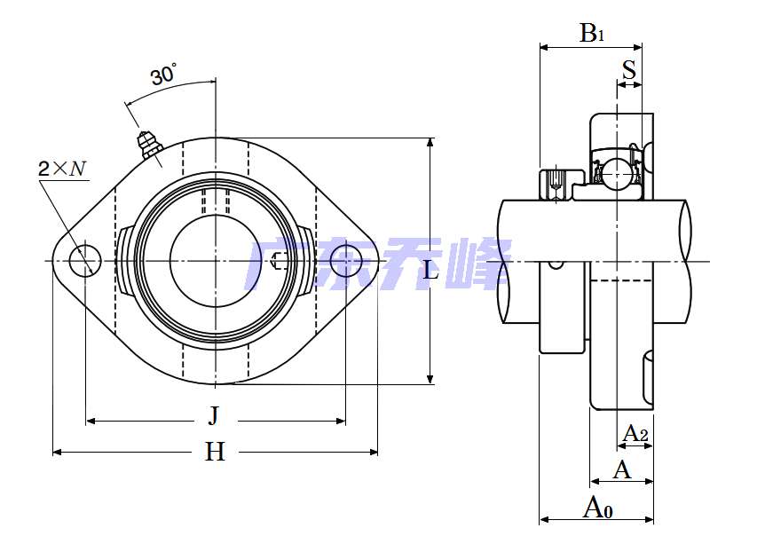 軸承型號:JELFD204,雙螺栓菱形法蘭式軸承座單元,鑄造外殼,帶偏心鎖緊套,JELFD型