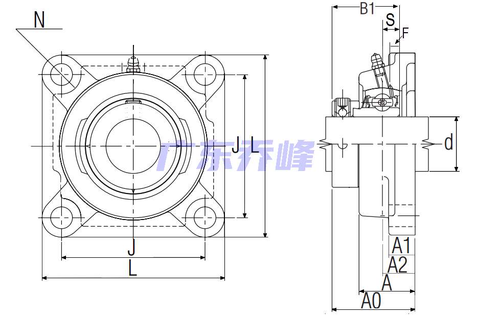 類型 四螺栓方形法蘭式軸承座