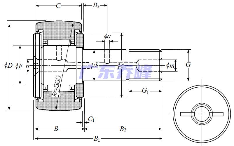 凸輪從動螺柱式滾輪軸承 - 球面外圈,KR..LL型 - 尺寸
