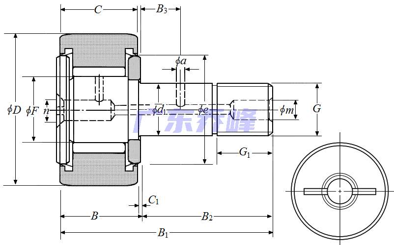 | 凸輪從動(dòng)螺柱式滾輪軸承 - 圓柱內(nèi)徑,KRV..LL型 - 尺寸 | |