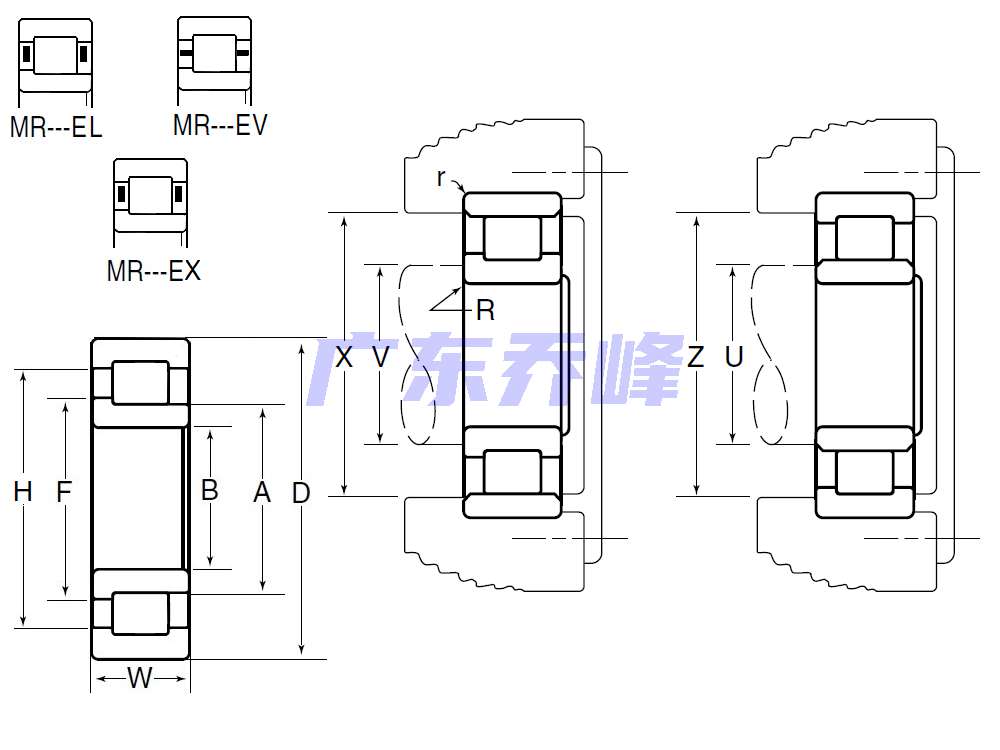MR:M:NTN BOWER產(chǎn)品,標(biāo)準(zhǔn)公制尺寸系列,R:內(nèi)圈單擋邊