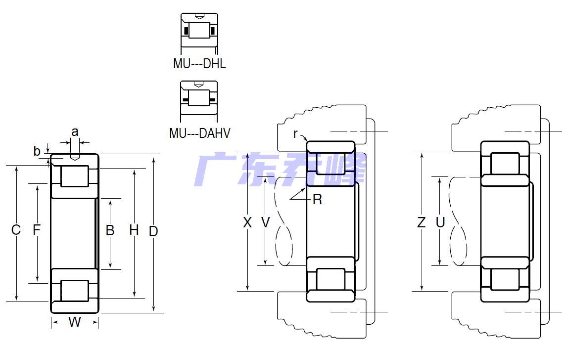 M:NTN BOWER產(chǎn)品,標準公制尺寸系列,U:內(nèi)圈雙擋邊