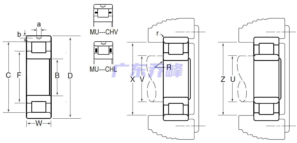 MU:M:NTN BOWER產品,標準公制尺寸系列,U:內圈雙擋邊