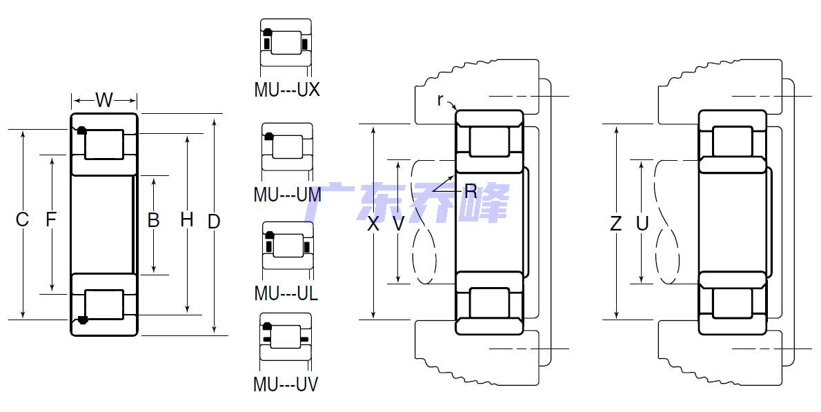 MU:M:NTN BOWER產品,標準公制尺寸系列,U:內圈雙擋邊