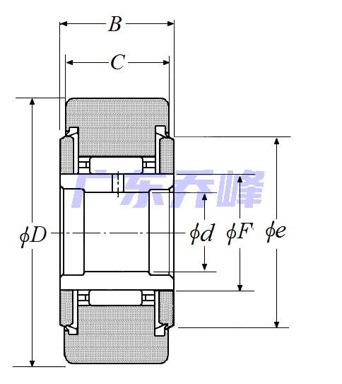 | 擋圈型滾輪軸承 - 帶內(nèi)圈,雙面密封,NATR型,圓柱內(nèi)徑 - 尺寸 | |
