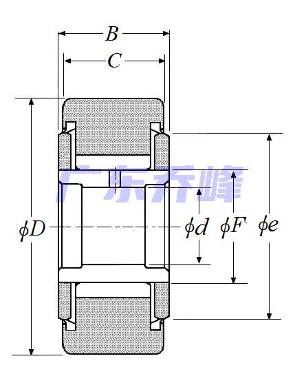 軸承型號:NATV40XLL,擋圈型滾輪軸承 - 帶內(nèi)圈,雙面密封,NATV型,圓柱內(nèi)徑,可替換的SKF軸承型號為:SKF NATV40PPX軸承
