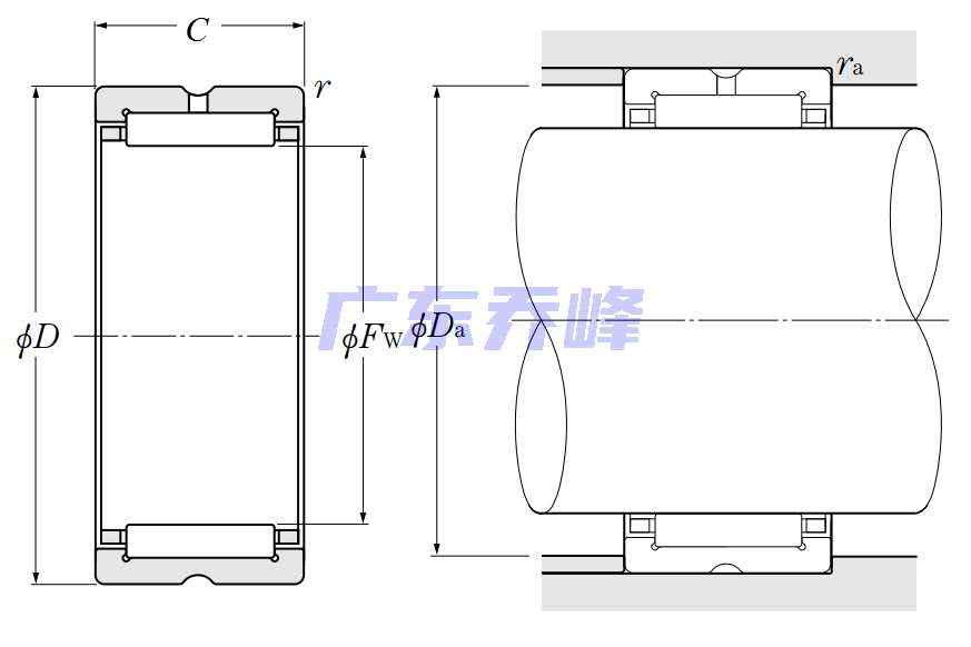 | 機(jī)加工滾針軸承不帶內(nèi)圈 - RNA49.R,RNA59,RNA69.R,NK.R,MR系列 - 尺寸 | |