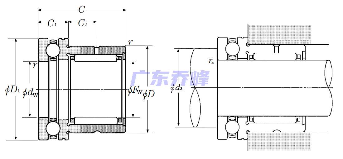 | 帶推力球軸承的滾針組合軸承 - 開式 - 尺寸 | |