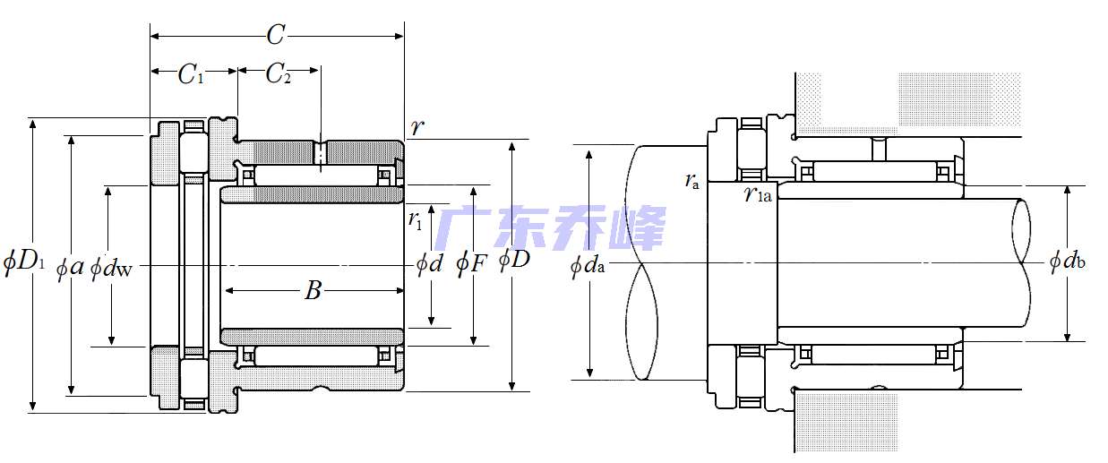 軸承型號:NKXR50+1R45X50X25,滾針和推力圓柱滾子組合軸承 - 開式帶內圈
