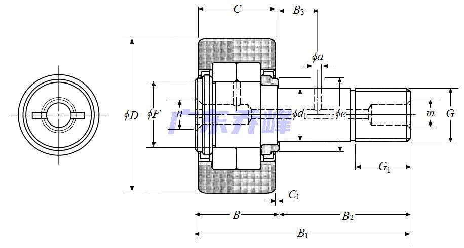 凸輪從動螺柱式滾輪軸承 - 圓柱內徑,NUKR型 - 尺寸