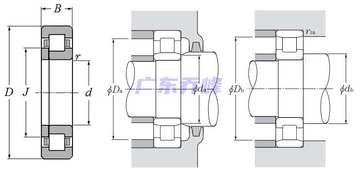 NUP:外圈雙擋邊,內圈單擋邊,另一側帶平擋圈