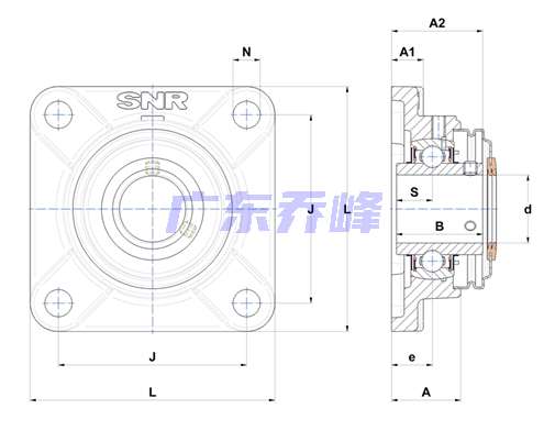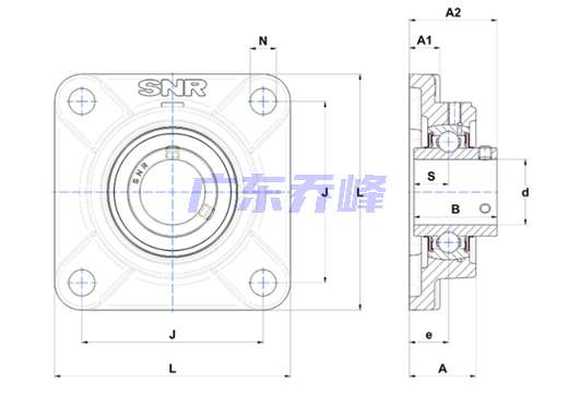 軸承型號:SUCF206-20,四螺栓方形法蘭式不銹鋼軸承座,帶緊定螺釘,SUCF型
