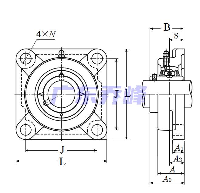 類型 四螺栓方形法蘭式軸承座