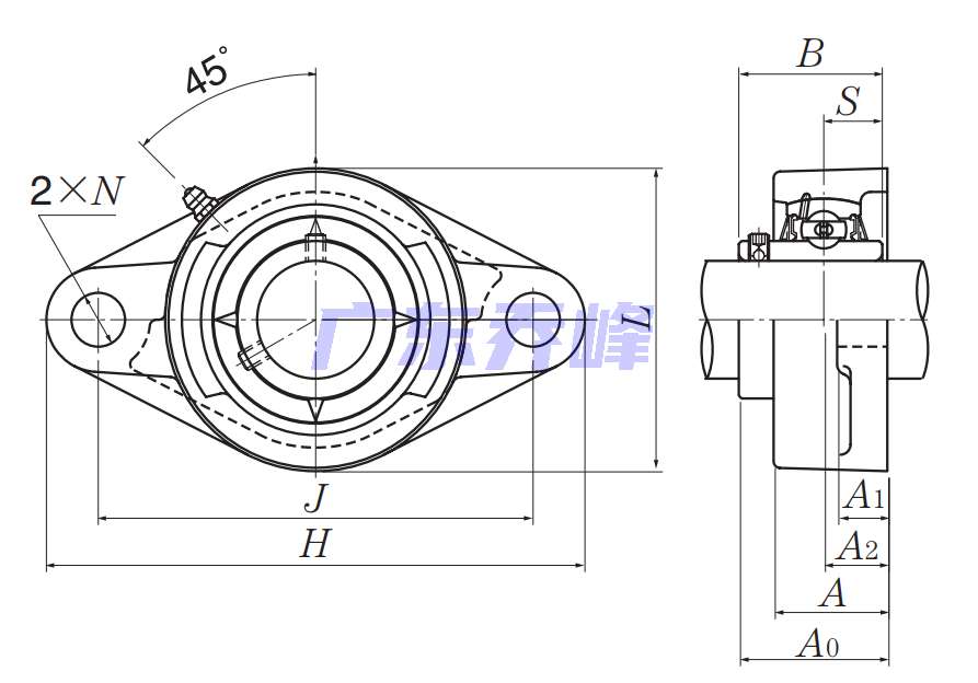 類型 雙螺栓菱形法蘭式軸承座單元