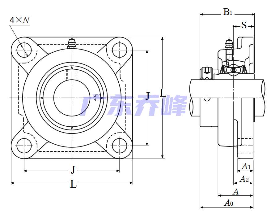 | 類型 | 四螺栓方形法蘭式軸承座 |